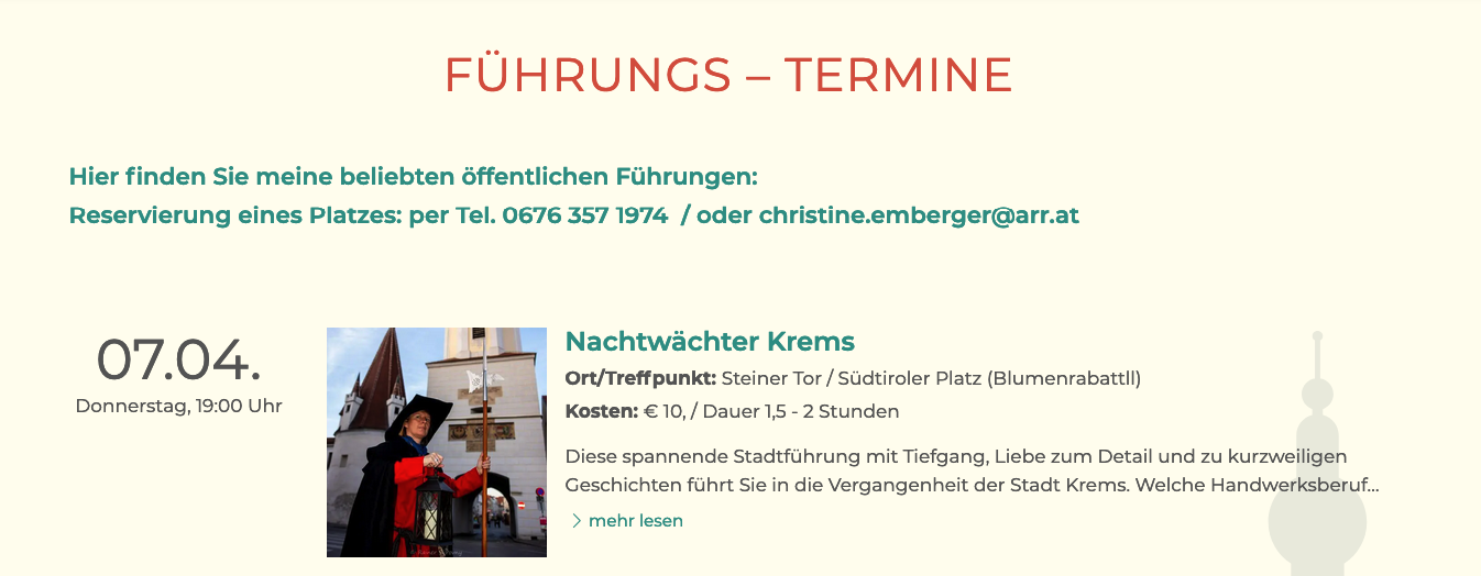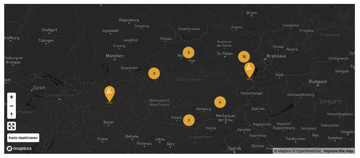 Basierend auf diesen Daten werden die Veranstaltungen dargestellt und können auch gefiltert werden.