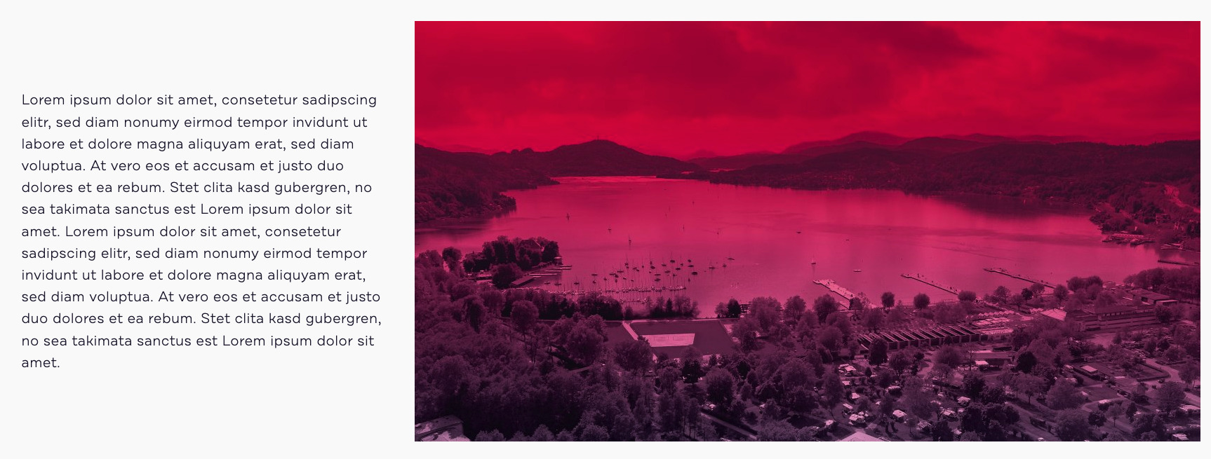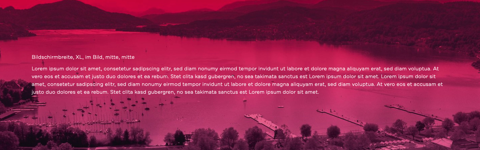 Über dem Bild/Video kann ein Text eingeblendet werden: Ein primärer Titel und ein darunterliegender Text an einer gewählten Position. Außerdem kann ein Link zu einer Unterseite oder externen Seite gesetzt werden. Ein Klick auf das Bild oder den Text führt den User dann an dieses definierte Ziel.