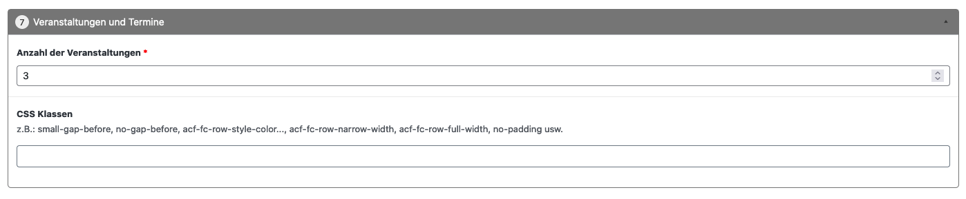 Wie beim Block Aktuelle Beiträge werden mit diesem Block die aktuellen Veranstaltungen (sofern diese auf der Website existieren) dargestellt.