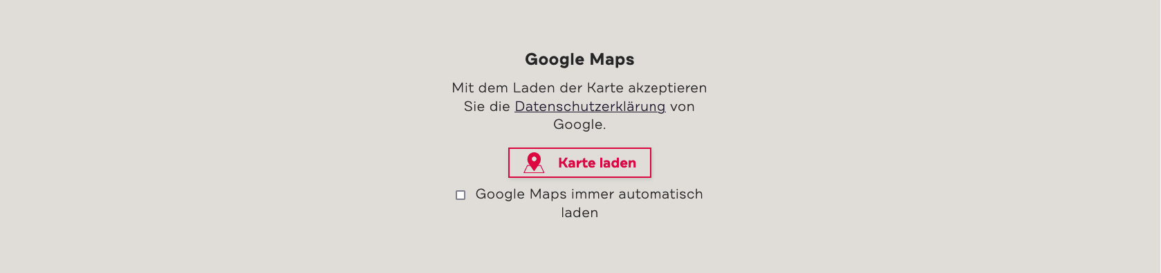 Eine Google Maps-Karte im Seitenkopf erfordert ein Google Maps-Konto mit Schlüssel. Außerdem ist zu beachten, dass die DSGVO vorschreibt, dass eine Karte erst nach expliziter Zustimmung des Users angezeigt wird. Das ist im Headerbereich problematisch, denn dann ist der Kartenbereich das erste, was der User sieht. Eine solche Karte sollte daher nicht auf der Startseite angezeigt werden. Allgemein empfiehlt es sich, eine notwendige Karte eher im unteren Seitenbereich einzubauen.