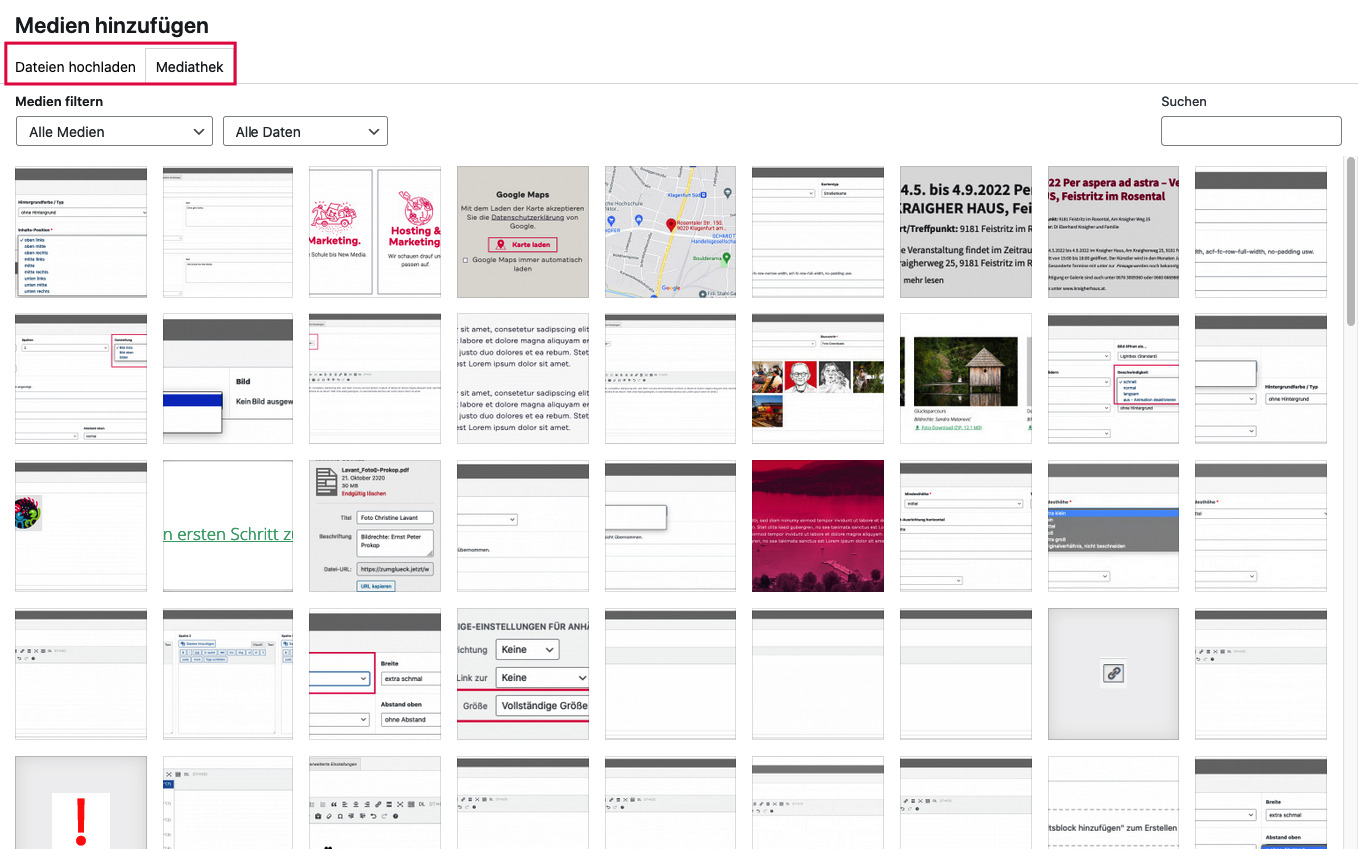 Bei Bildern hat man üblicherweise die Option ein Bild aus der Mediathek zu wählen oder eine neue Datei hochzuladen.