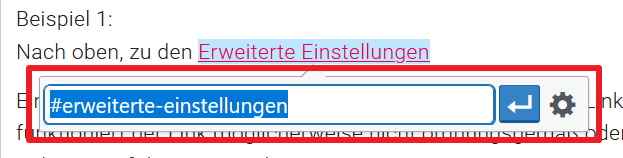 In diesem Beispiel würde der Link „Linktext“ auf die Anker-ID „erweiterte-einstellungen“ verweisen. Wenn der Benutzer auf den Link klickt, wird er direkt zum Abschnitt auf der Seite geleitet, der mit der Anker-ID übereinstimmt.
