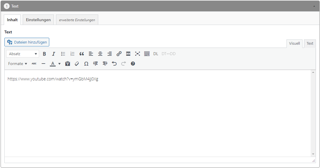 WICHTIG: Die URL des Videos muss in eine neue, leere Zeile eingefügt werden!