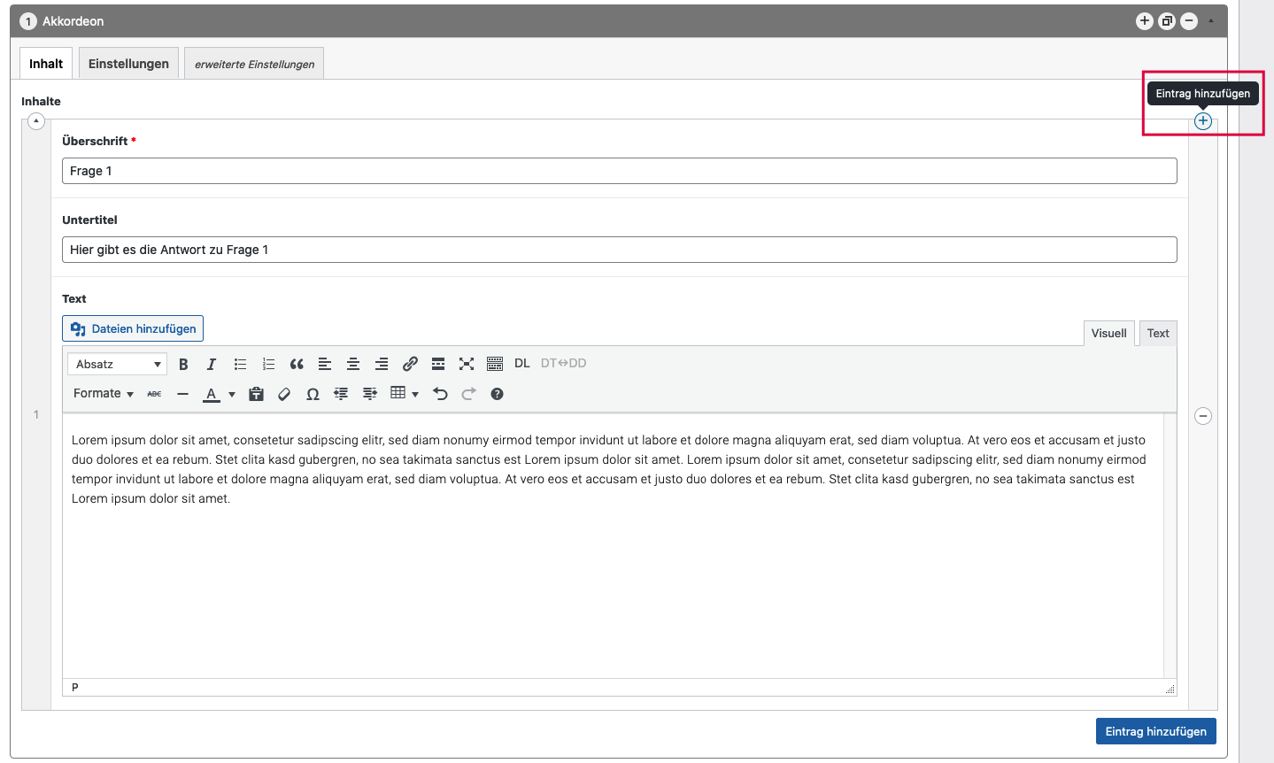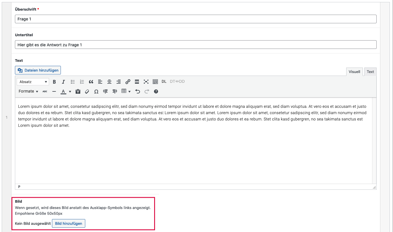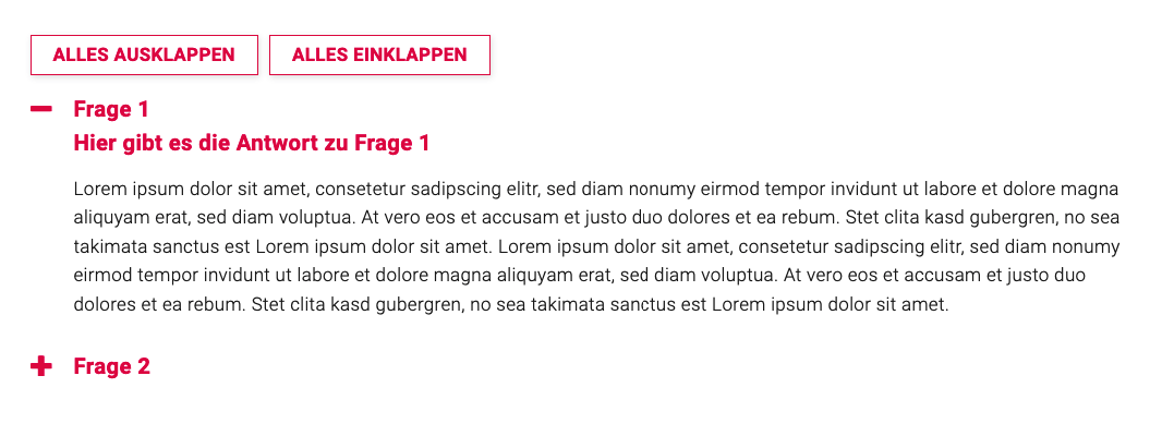 Dieser Block erlaubt es, klassische FAQs als ausklappbares Akkordeon zu bauen.