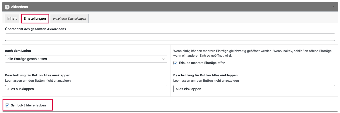 In den Einstellungen kann das Verhalten des Akkordeons genauer definiert werden: