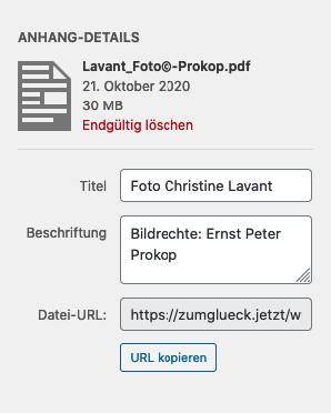 Wichtig ist ein gut lesbarer Titel, denn dieser wird auf der Website als Beschriftung dargestellt.
