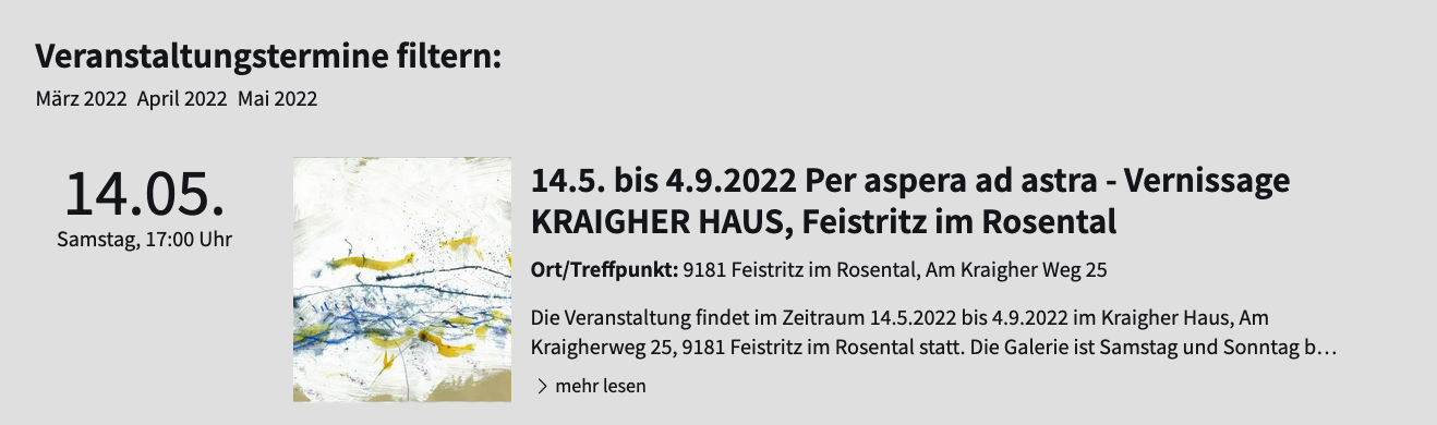 Basierend auf diesen Daten werden die Veranstaltungen dargestellt und können auch gefiltert werden.